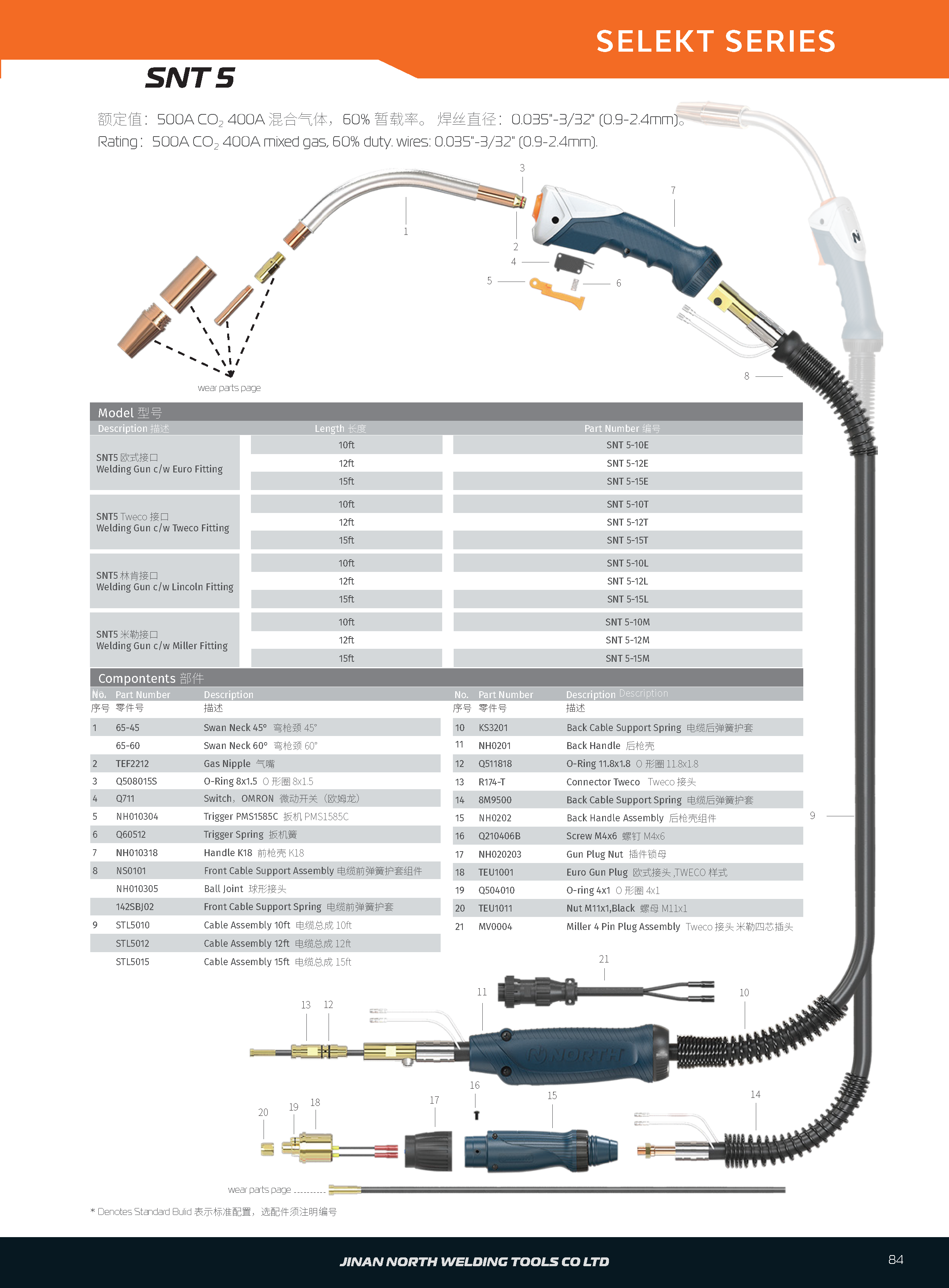 SNT5焊槍配林肯接頭 10英尺 SNT 5-10升